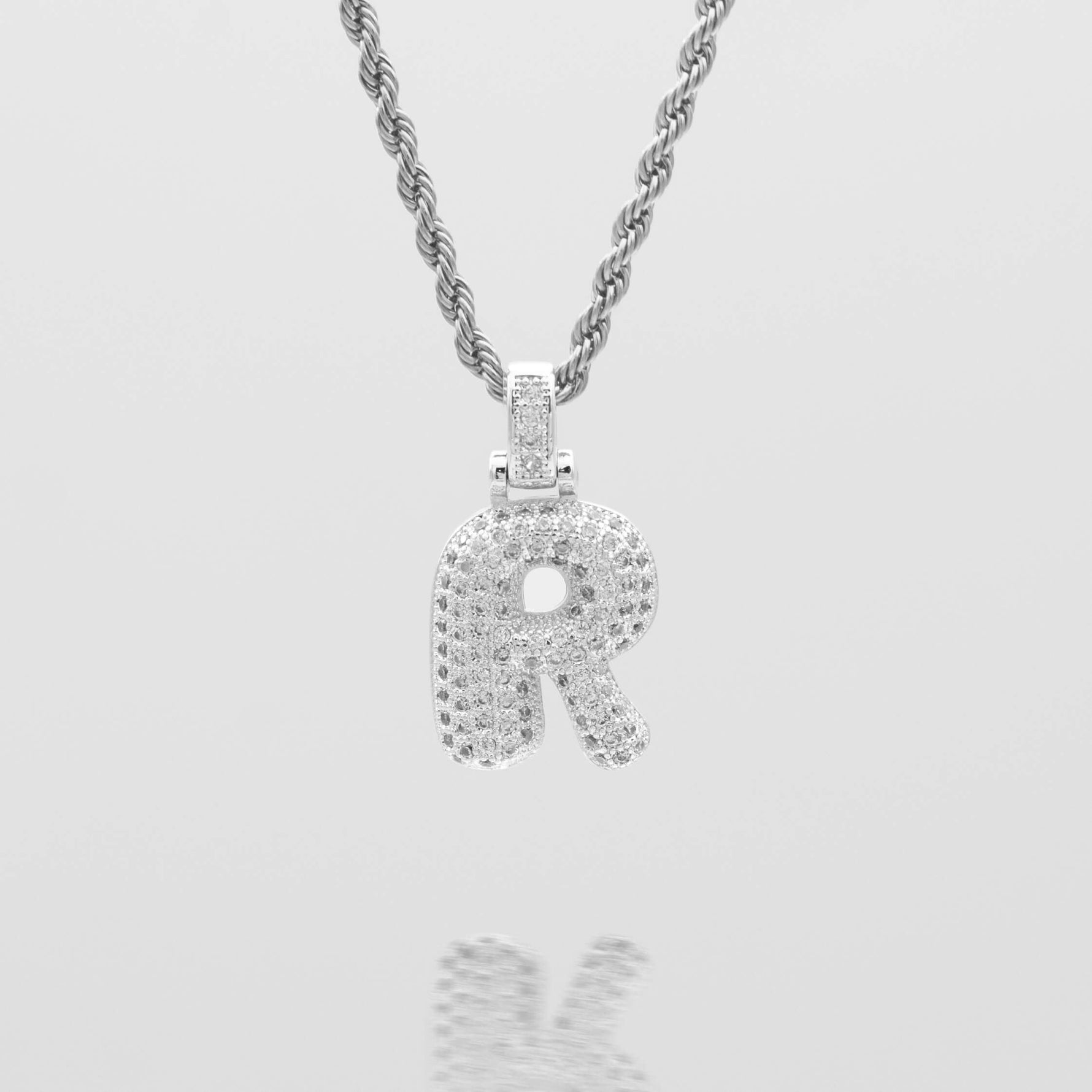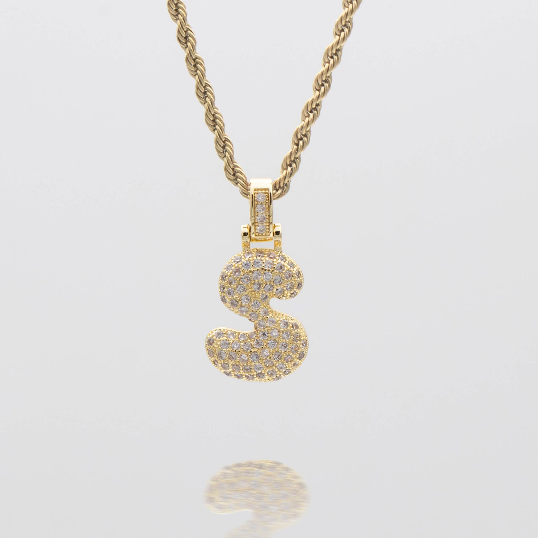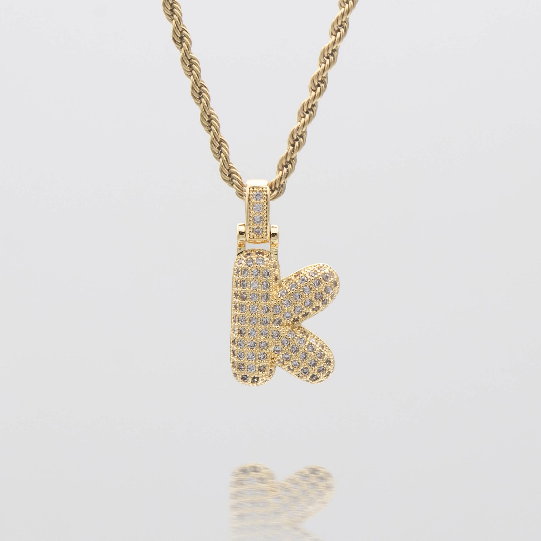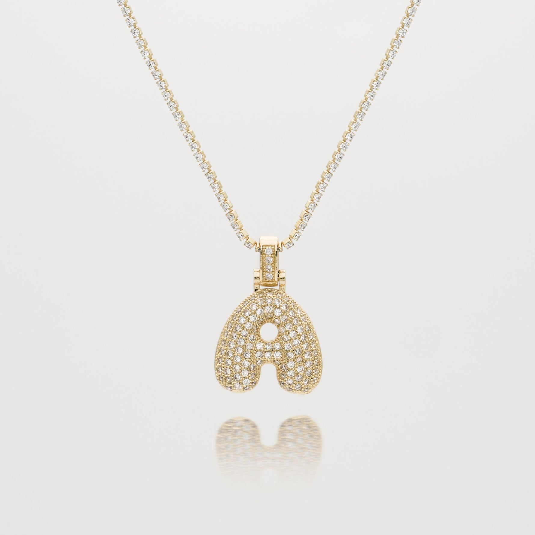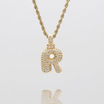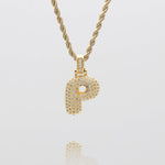 Pave Bubble Letter Initial Necklace
