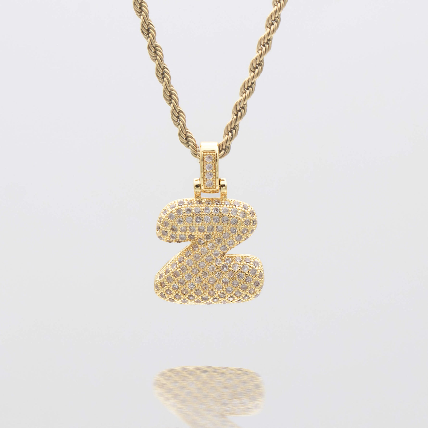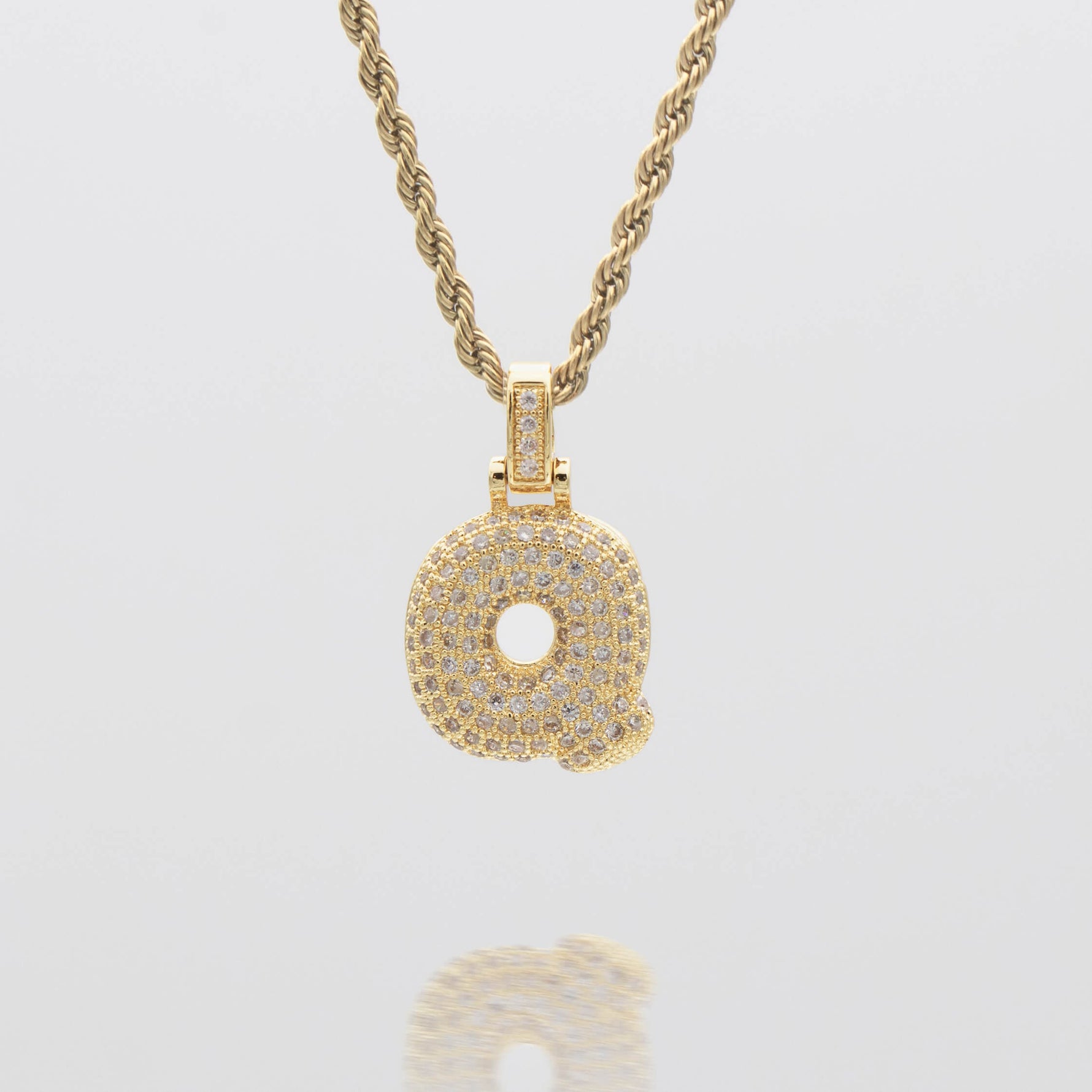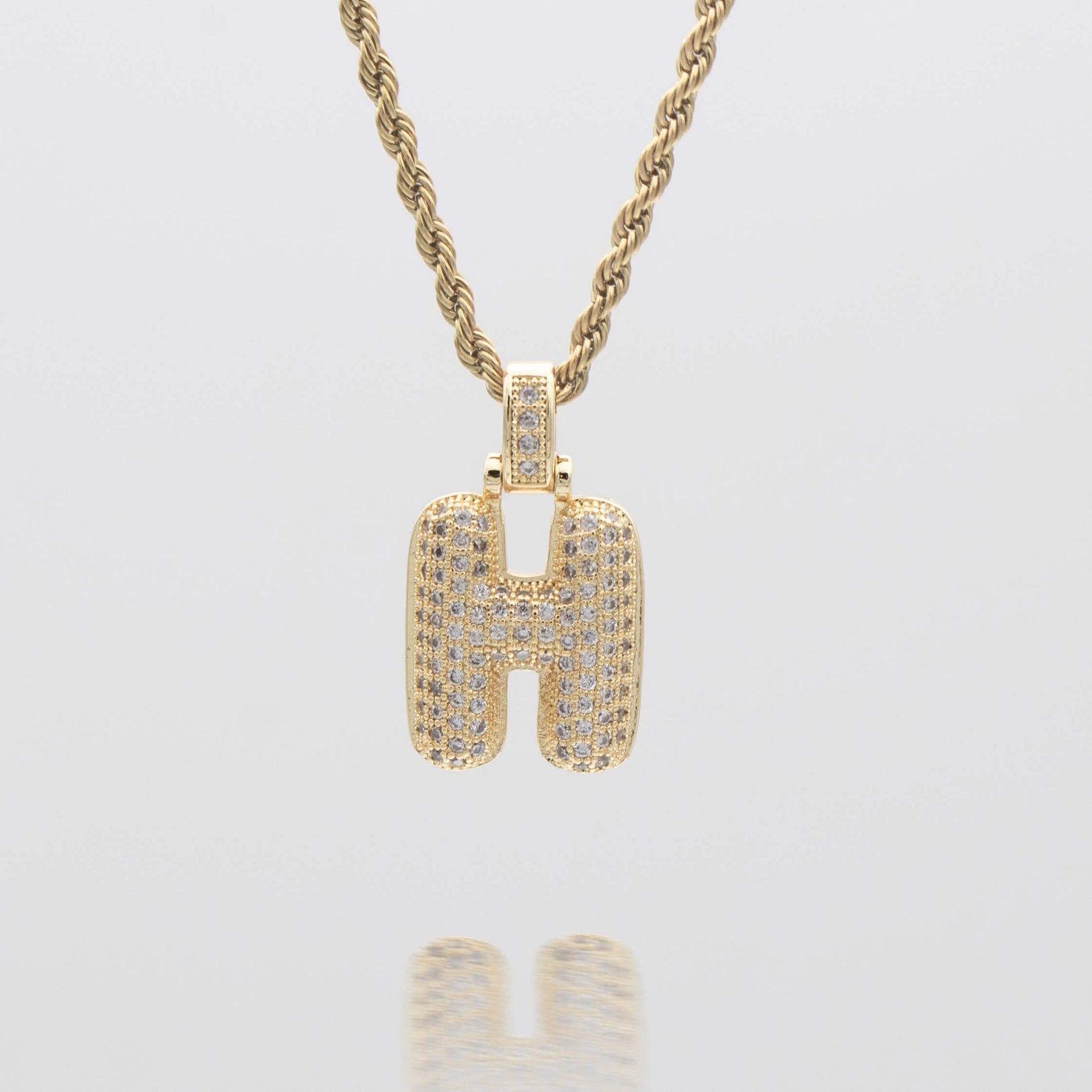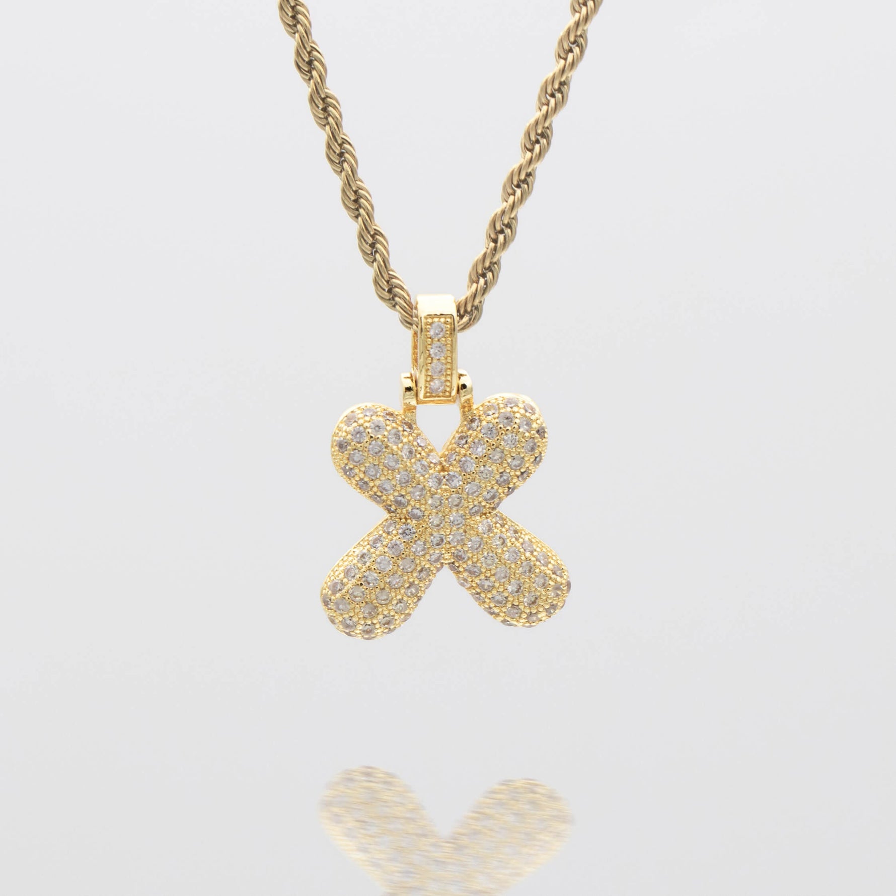 Pave Bubble Letter Initial Necklace